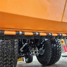 Has a nice almost new Thyregod TK-1600 PTO-driven sweeper at the front, approx. 1.6 m wide, and an almost new FK Machinery sand spreader at approx. 1.4 m wide.